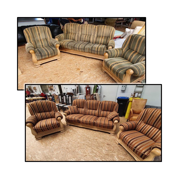 • Belgische Eichengarnitur 3/2/Hocker